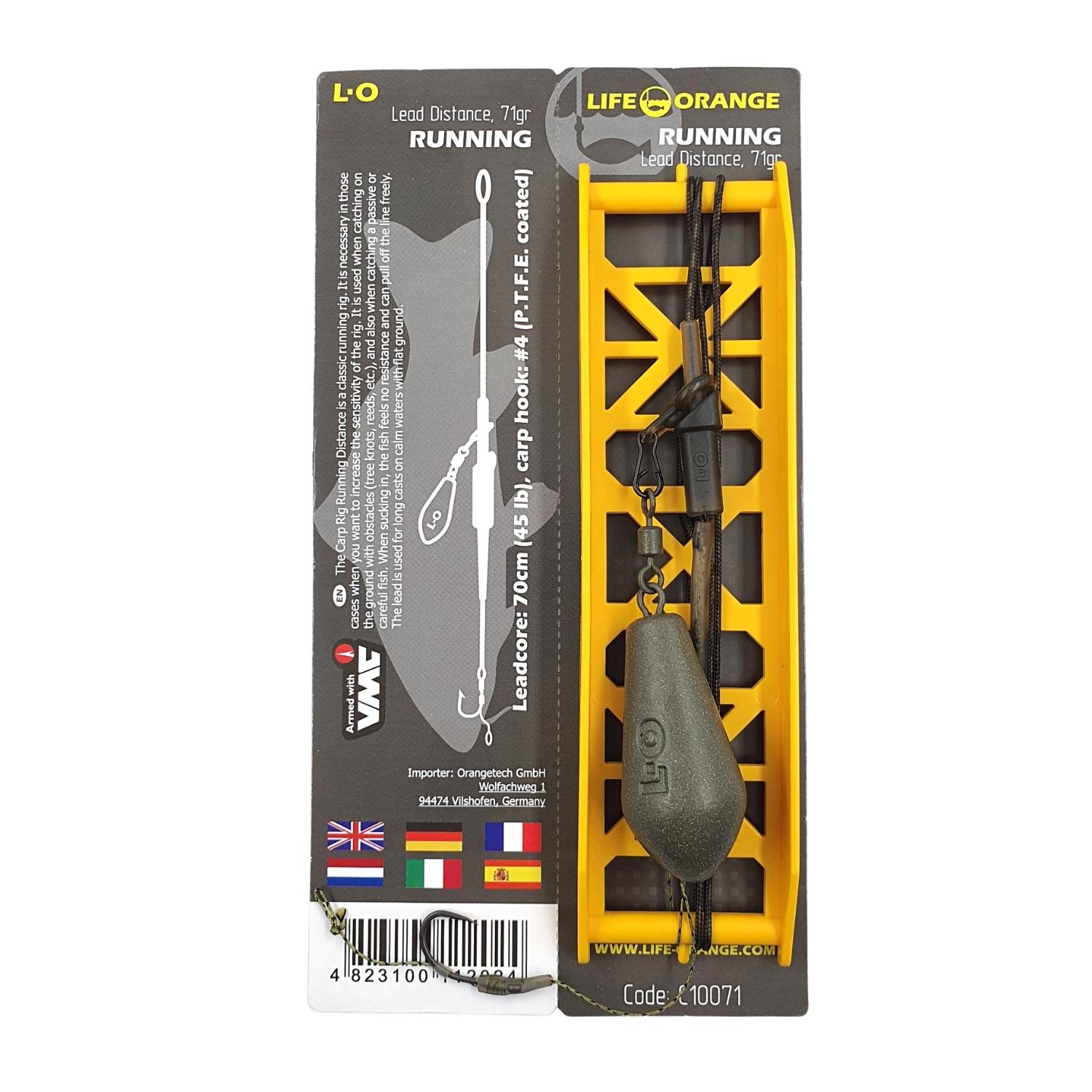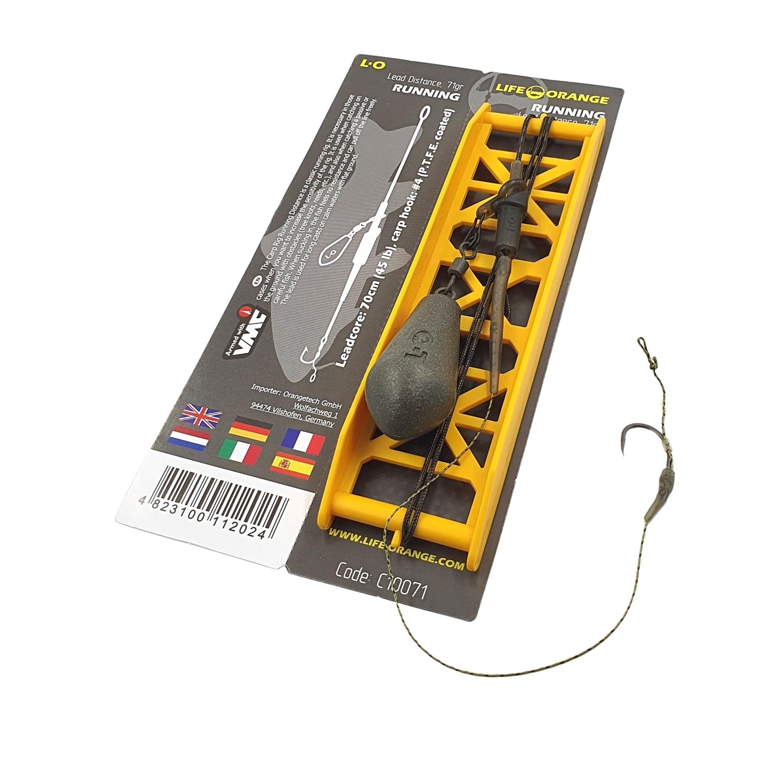 The Carp Rig Running Distance is a classic running rig. It is necessary in those cases when you want to increase the sensitivity of the rig. It is used when catching on the ground with obstacles (tree knots, reeds, etc.), and also when catching a passive or careful fish. When sucking in, the fish feels no resistance and can pull off the line freely. The lead is used for long casts on calm waters with flat ground.